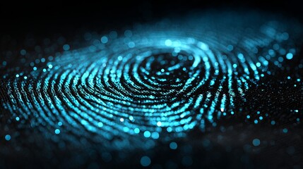 Unlock secure digital future with glowing blue abstract fingerprint technology, representing identity and data protection