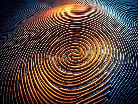 Intricate swirls and ridges of a thumbprint are meticulously captured in high-resolution detail, revealing an intricate