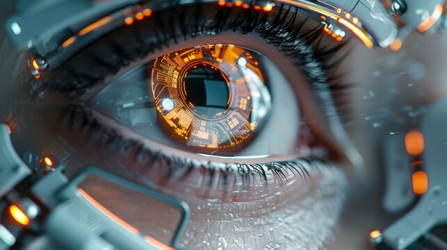 Cyborg eye futuristic technology human machine interface concept artificial intelligence integration close up detailed view