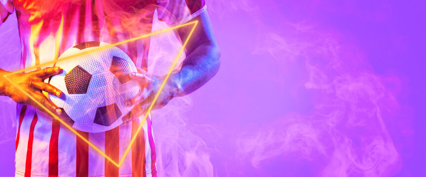 Biracial young female player shouting while standing with clenched fist and soccer ball