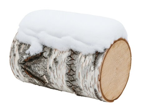 Winter scene snow-covered birch log nature isolated on transparent background