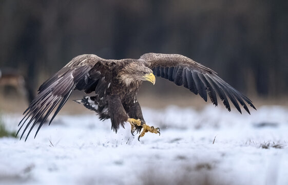 A dramatic close-up of eagle talons, capturing the raw strength and precision of this majestic bird of prey. The sharp claws and textured scales emphasize the eagle’s power.