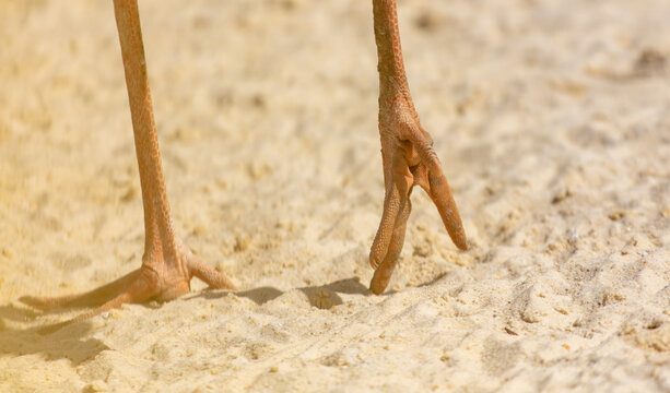 Close-up of a bird's paw on sandy ground