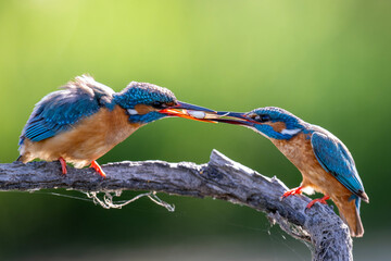 A pair of common loons (Gavia immer) performing a mating or pair bonding ritual dance on Upper Chateaugay Lake, New York, USA