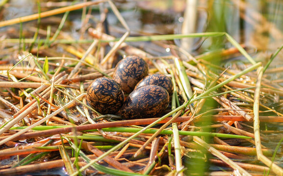 Serene hen laying eggs in a rustic nest inside a charming chicken coop for farm