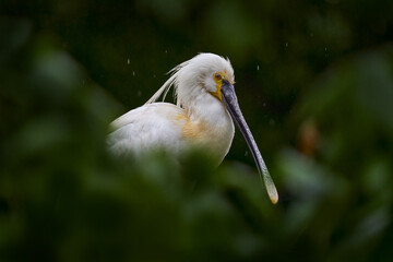 Close-up of rare tropical bird with intense gaze in natural habitat