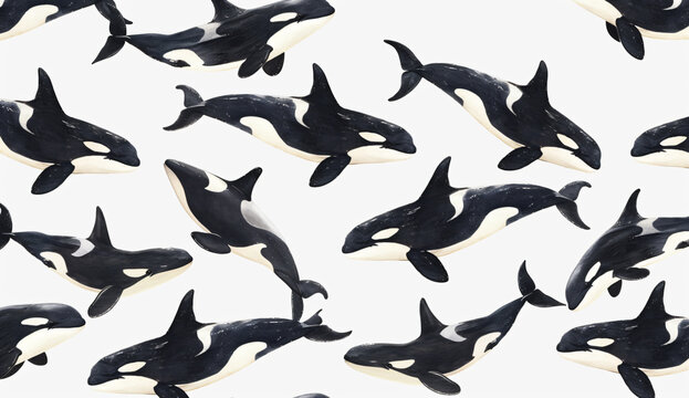 Photo of A pattern with symmetrical orcas on white background,