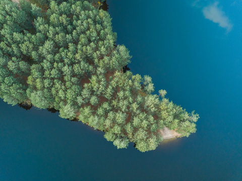 Aerial birds eye view photo taken by drone of iconic beaches in village of Lindos, Rhodes island, Dodecanese, Greece.