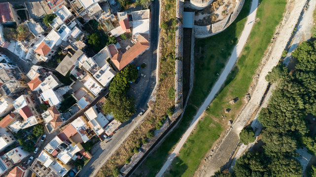Rhodes old town aerial top down panoramic view in Rhodes island,Greece