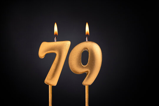Elegant golden numbers 79 shining on dark textured background for celebrations and milestones
