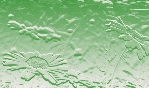 Pale green 3d textured metallic effect of blooming daisies, space for text, copy