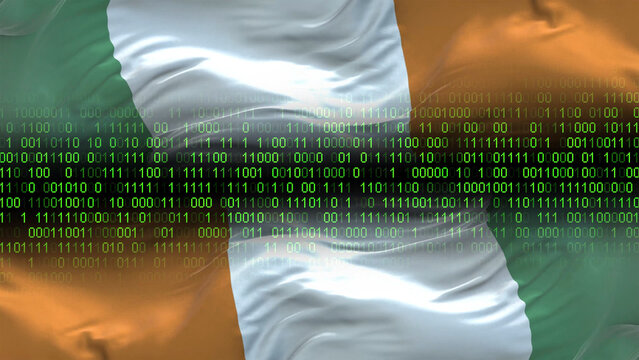Cote d'lvoire flag - 3D realistic waving flag on matrix digital background with binary code
