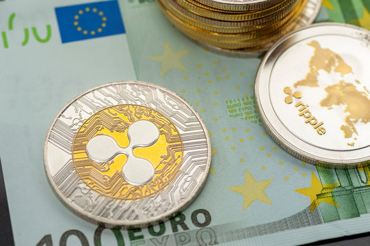 Crypto currency coin set collection, bitcoin, ethereum, litecoin, ripple. Digital currency. Cryptocurrency. Silver and golden coins with bitcoin, ripple, litecoin and ethereum symbol.