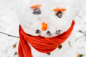 Young child biting pink cotton candy holding sticky sugar on sunlit cheeks at carnival