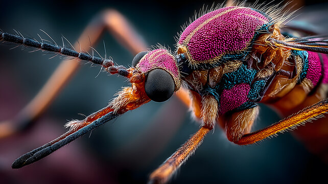 Biting midge, from the side, profile view, Hyper-realistic, early morning light