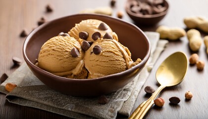 peanut butter ice cream with chocolate chips and peanut bits