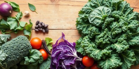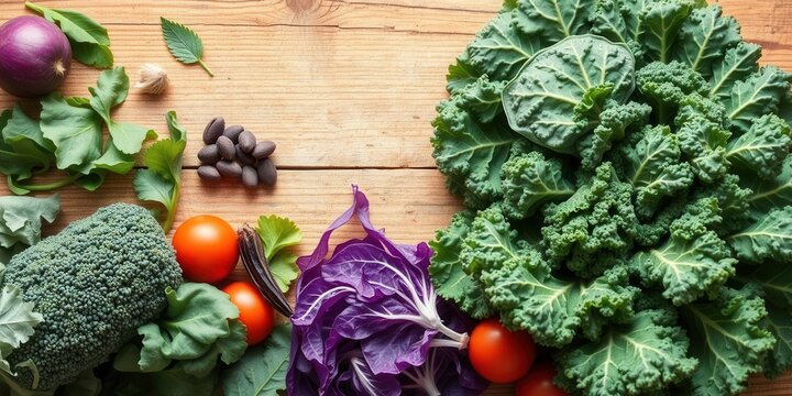 Organic kale leaves with a bitter green background, vegetarian, vibrant, kale
