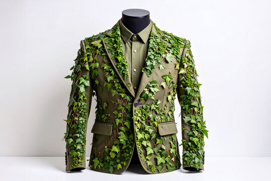 a jacket with climbing ivy hanging on the hanger