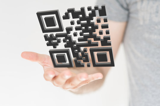 Scan qrcode. Digital mobile smart phone with qr code scanner on smartphone screen for payment, online pay, scan barcode technology man holding. Retail shop accepted digital pay without money.