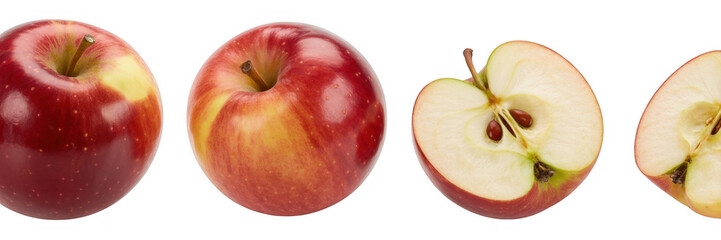 Red apples and sliced apples fruit healthy isolated on a transparent background
