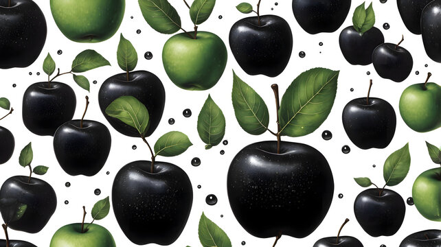 A Seamless Pattern of Black and Green Apples