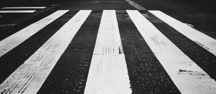 Crosswalk for pedestrians with black and white stripes on the road with the potential to have a copy space image