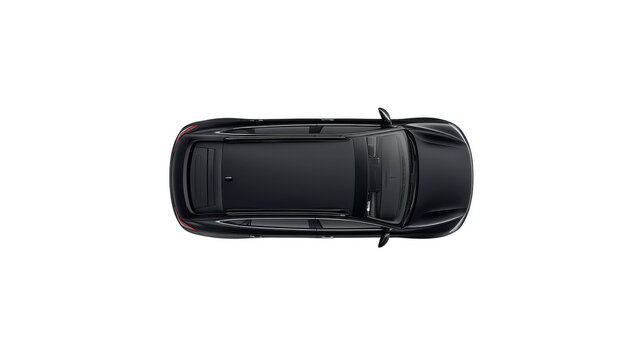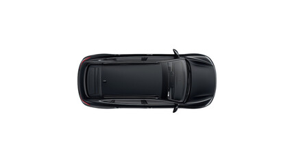 Modern black car sedan above top drone view isolated on white transparent background, png