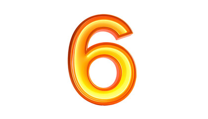 A vibrant, glowing number six in orange and yellow hues, outlined against a solid black background. The numeral appears to have a polished, glossy appearance