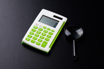 Calculator with mathematical equations background