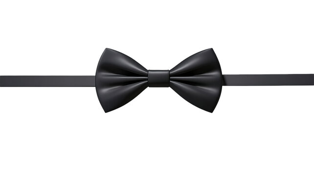 Top view elegant black satin bow tie, isolated cutout on transparent background.