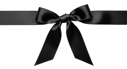 Elegant black satin ribbon bow for gift wrapping or decoration isolated PNG with Transparent Background