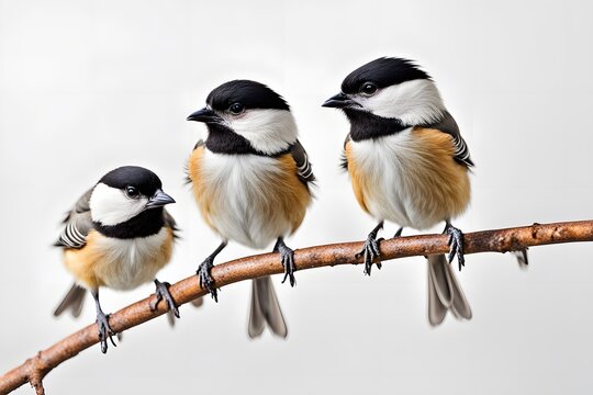 Chickadees bird on white background, AI Generated