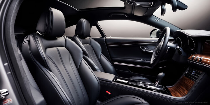 closeup shot of black leather car seat with  stitch,sports luxury car