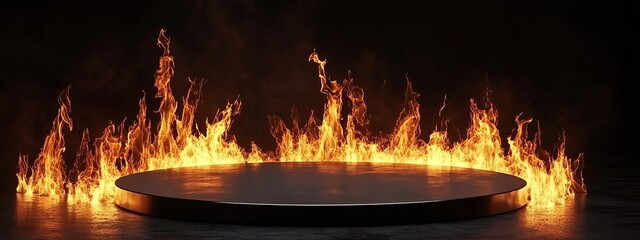 Levitation of flaming ring above stone altar creating fiery ritual glow for fantasy concept art