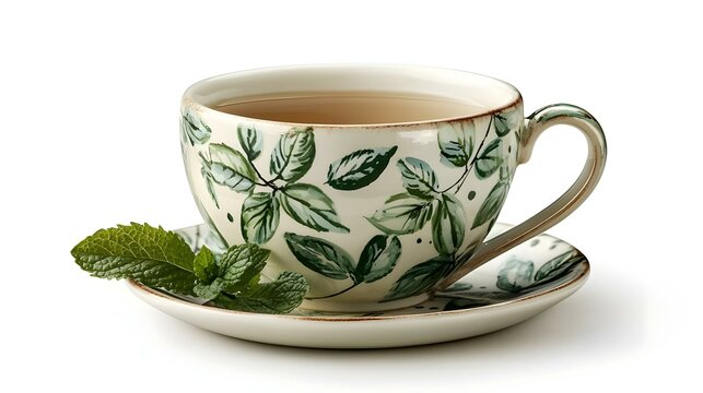 Hands holding coffee cup with cookie on side in cozy cafe setting