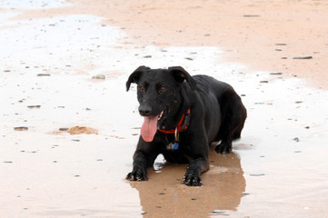 Black dogs in the forest. Black dog portrait. beautiful dogs