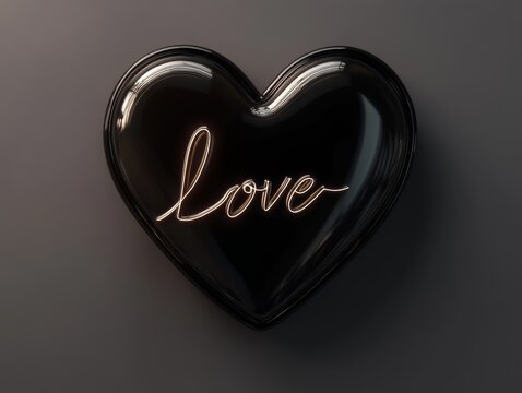 Stylized black heart outline featuring the word love in cursive, perfect for modern design aesthetics and romantic expressions