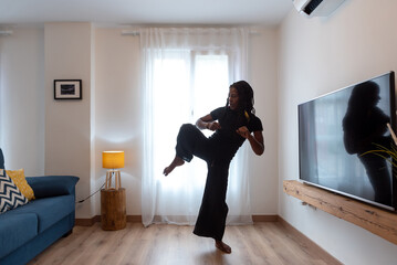 Black Woman Practicing Kung Fu Skills
