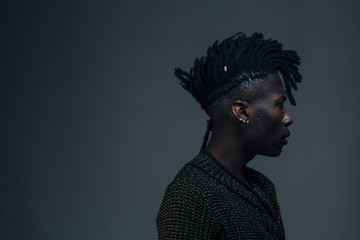 African woman stylish portrait in underwear on white background. Seductive girl posing with beautiful body