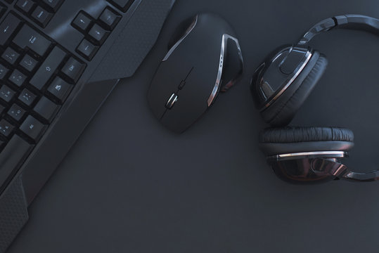 A sleek gaming setup features a black mouse pad, illuminated keyboard, and a high-resolution monitor in a dimly lit environment.