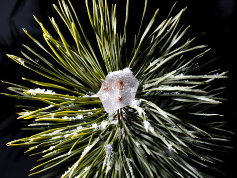 Pine with yellowed needles from the disease. Diseased needles Austrian pine (Pinus ‘Nigra’) or black pine. Dry needle, rust on needles, but possibly effect of parasites or Неrpotrichia disease.
