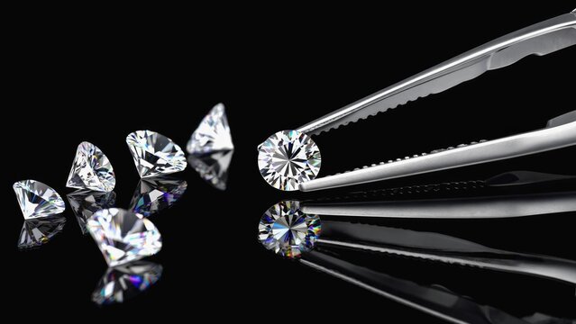 A pair of pliers and a pair of diamonds on a black surface