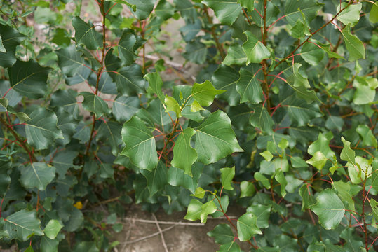 background of branches and leaves of a black poplar