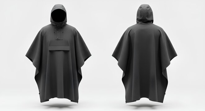 Minimalist Studio Shot Modern Black Poncho Waterproof Rainwear Apparel Mockup