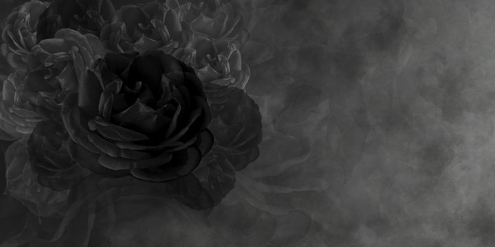 Textured black rose and black cement background, wallpaper,name card, copy space