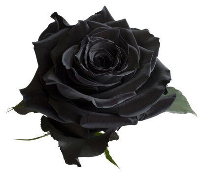 black rose with leaf isolated, png