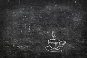 Chalk on black board: cup of tea of coffee