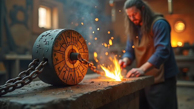 Blacksmiths fiery forge a scene of creation