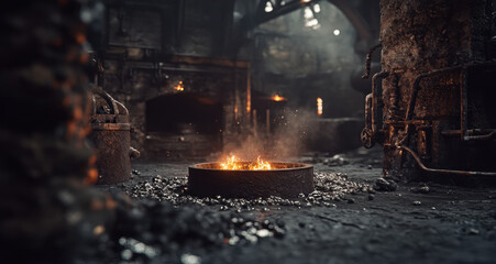 Blacksmith working in rustic workshop fireplace