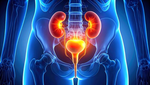 3d illustration of human urinary system kidneys with bladder anatomy